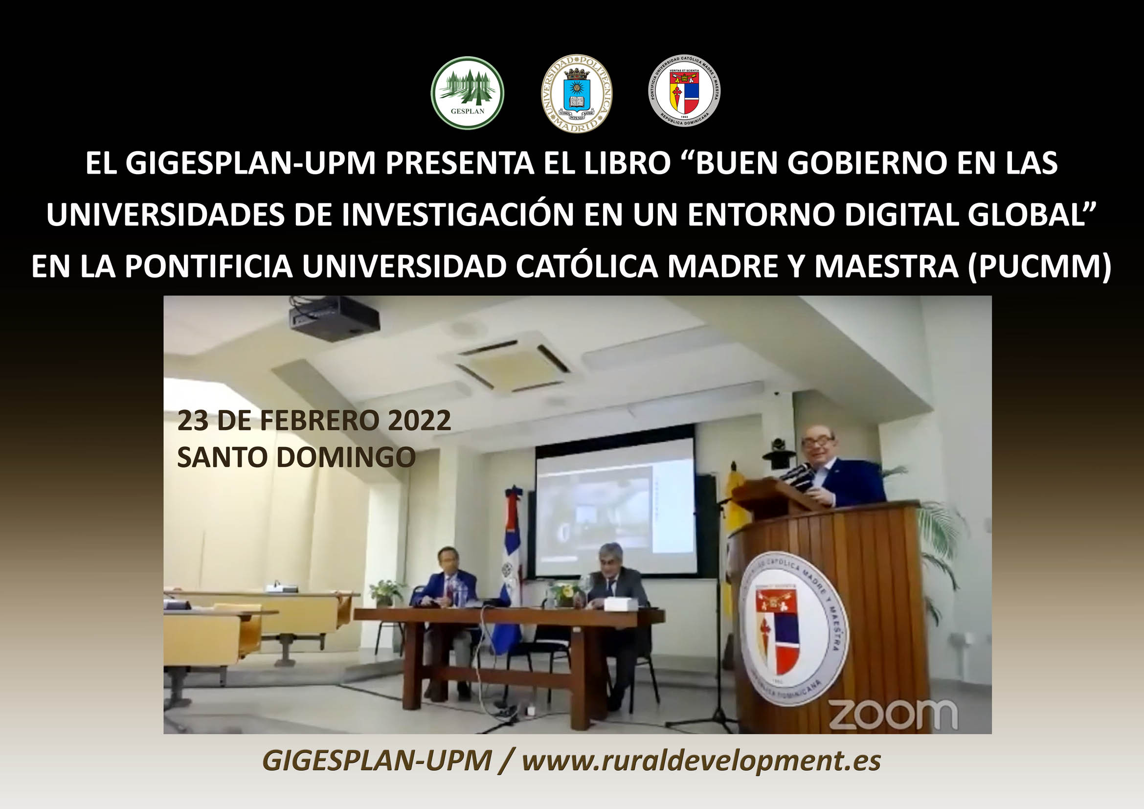 El pasado 23 de febrero de 2022 tuvo lugar en Santo Domingo en la sede del Decanato de Posgrado de la Pontificia Universidad Católica Madre y Maestra (PUCMM) la presentación del libro “Buen Gobierno en las Universidades de investigación en un entorno digital global” coordinado por los doctores Adolfo Cazorla de la UPM y Felipe San Martín de la Universidad Nacional Mayor de San Marcos (UNMSM) de Perú.