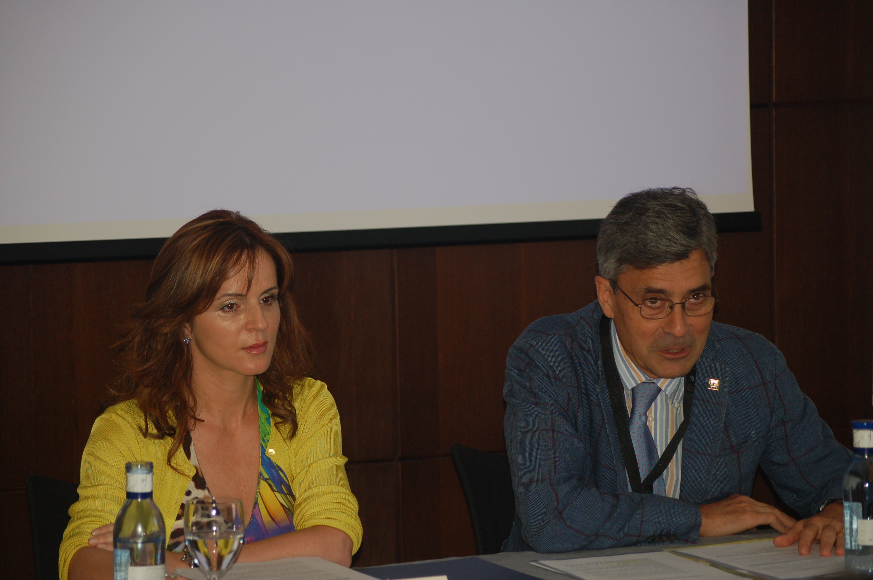 Durante la mañana del lunes 18 el curso acogió a Dª Silvia Clemente, Consejera de Agricultura de Castilla y León, que atendió a los medios y que en su intervención destacó la oportunidad del debate que suscitaba este curso, en un momento en el que se avecinan cambios importantes que requieren nuevas políticas. La Consejera asimismo lamentó la debilidad del productor en la cadena alimentaria y que "sufren con mayor intensidad el establecimiento de los precios".(Ver notas de prensa) Abajo en la foto la Consejera con Adolfo Cazorla, codirector del curso, en un momento durante su intervención.