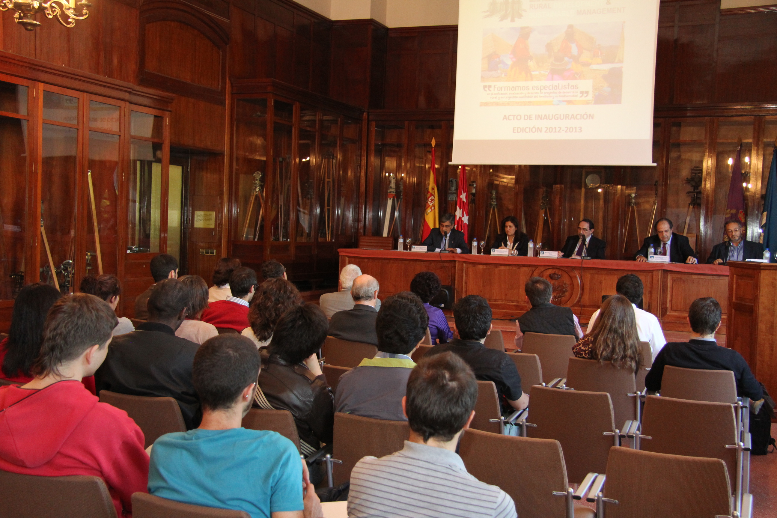 El pasado 1 de Octubre tuvo lugar en la ETSI Agrónomos la inauguración del Máster de Planificación de Proyectos de Desarrollo Rural y Gestión Sostenible para este curso 2012/2013. Los profesores de los grupos de investigación GESPLAN (de la ETSI Agrónomos) y SILVANET (de la ETSI Montes), organizan el máster que en esta tercera edición contará con 20 alumnos de 8 países diferentes, que han superado un proceso de selección en el que han participado 158 personas.