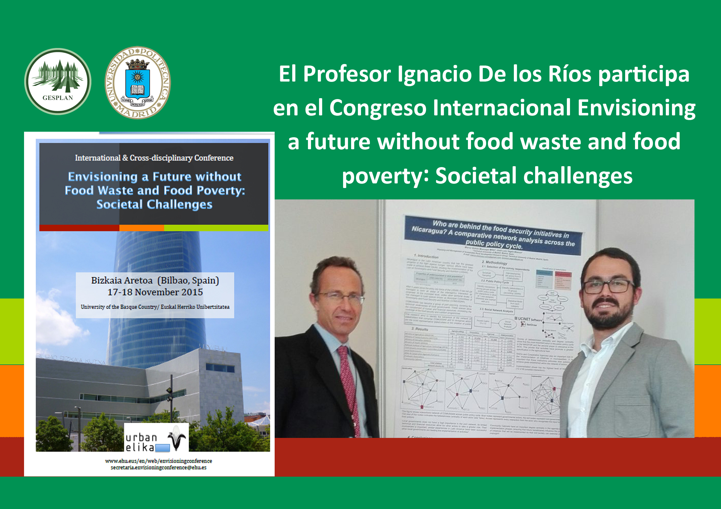 El prof. De los Ríos: “Hemos tenido una gran acogida por parte de los organizadores del congreso, al frente de la profesora Leire Escajedode la Universidad del País Basco.Las actividades presentadas desde la Cátedra Banco de Alimentos UPM, en colaboración con la Federación Española de Bancos de Alimentos (FESBAL) y desde el marco conceptual del modelo “Working With People”, han resultado de gran interés, y ha sido una ocasión para debatir y validar, desde el ámbito científico internacional, el enfoque del modelo y el papel que tenemos las universidades de cara a los grandes retos sociales. También se advierte la importancia de la Innovación Educativa para contribuir laresponsabilidad social desde las Universidades ylas estrategias educativas”.