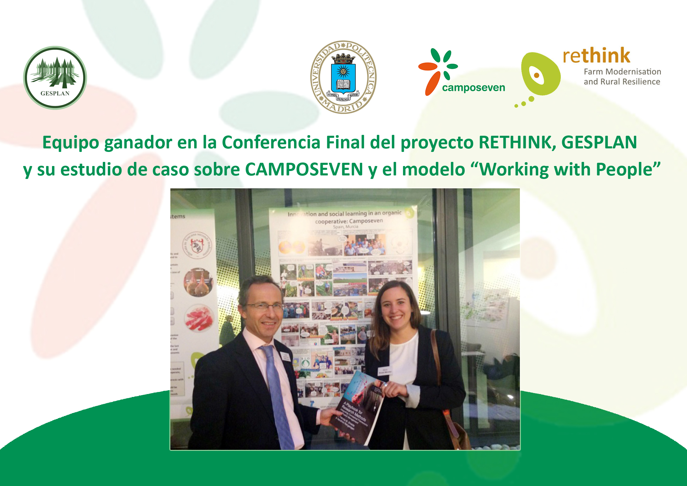 En este proyecto RETHINK, el Grupo GESPLAN incorpora su experiencia en la aplicación del modelo “Working with People” en distintos casos de éxito a nivel internacional y junto con la Empresa Campo7 especializada en cultivos intensivos en el Campo de Cartagena desarrollarán el subproyecto titulado “Innovation and social learning in intensive vegetable production in the Murcia region”.