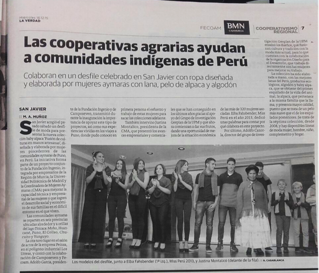 El periódico "La opinión de Murcia" ha publicado un articulo sobre el desfile de moda Aymara celebrado el pasado sábado en San Javier (Murcia).
