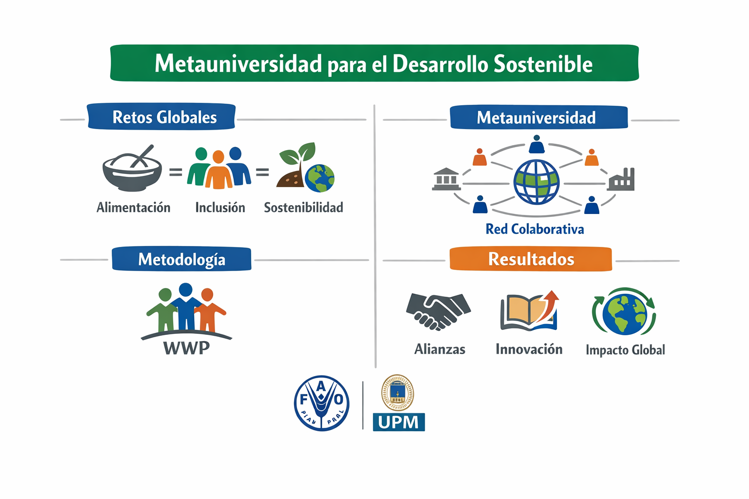 A partir de estos fundamentos, la FAO y el grupo de investigación GESPLAN (UPM) impulsaron desde 2016 una red internacional de universidades y empresas en América Latina, el Caribe y España. Nueve años después, esta red se consolidó como una plataforma colaborativa que reúne a 46 universidades y 52 empresas de 12 países, comprometidas con la sostenibilidad agroalimentaria.